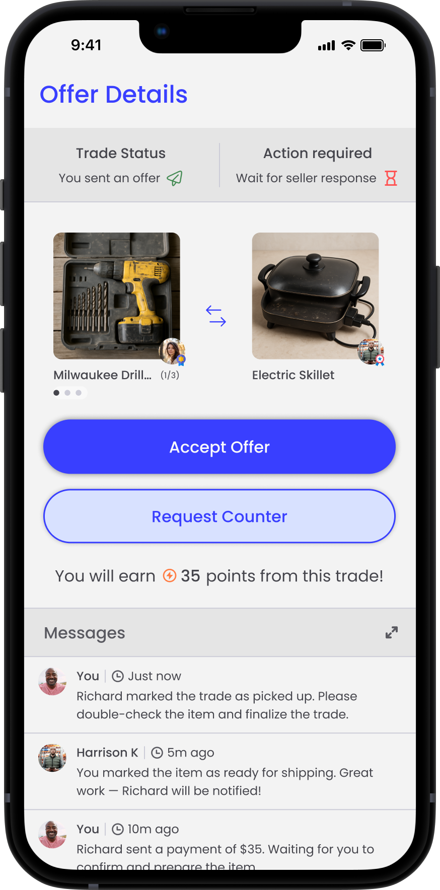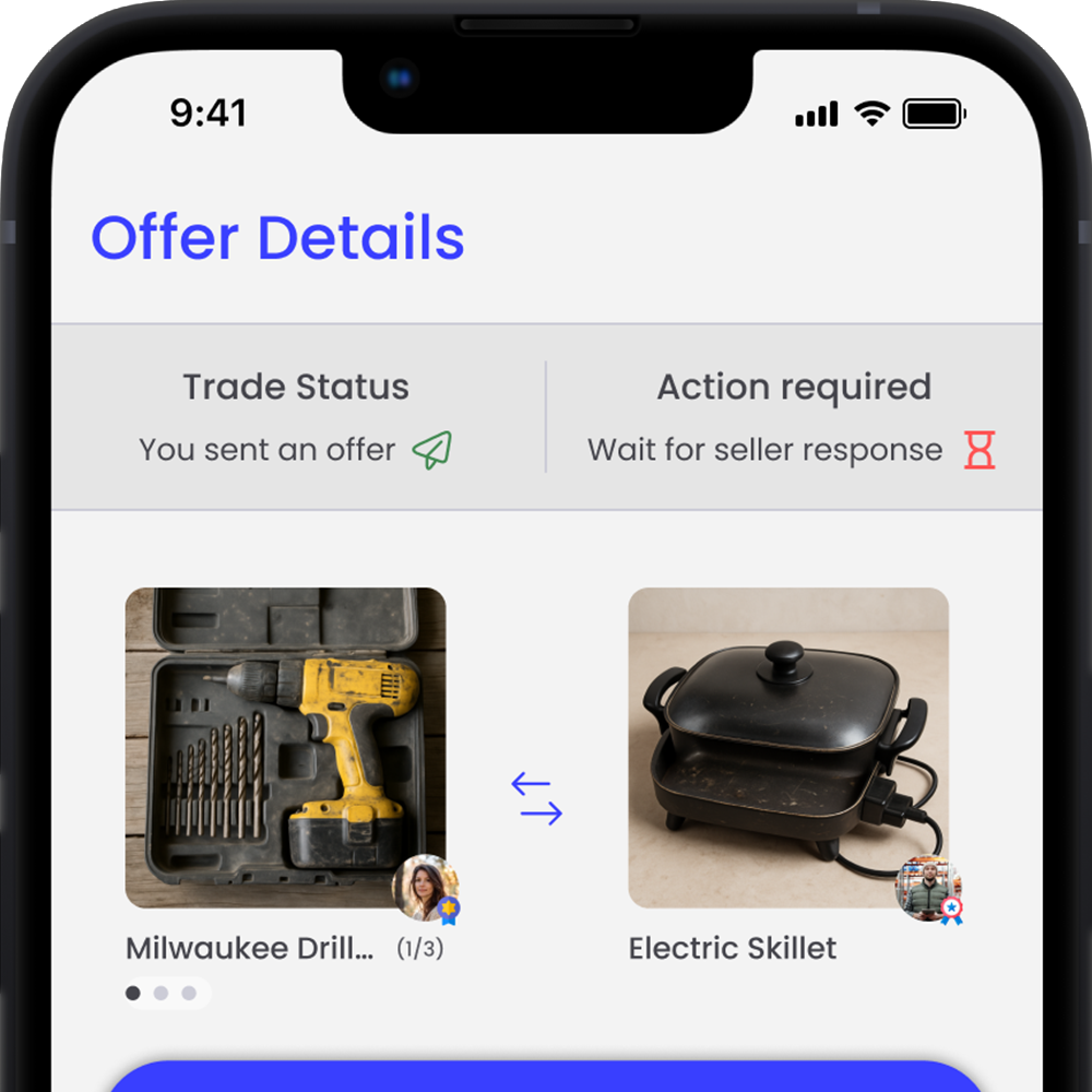 Trade Up reimagines peer-to-peer marketplaces by focusing on item exchanges instead of traditional buying and selling. The platform introduces structured negotiation tools and trust signals that make trading simple, safe, and engaging.
