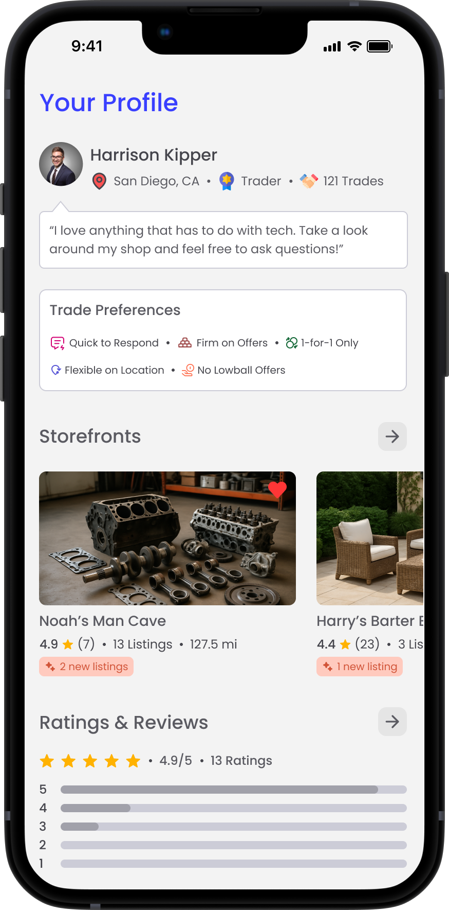The redesigned interface simplifies how users discover items and propose trades within a peer-to-peer marketplace. Clear listing layouts, reputation indicators, and streamlined trade flows help users quickly evaluate items and initiate exchanges. The experience encourages exploration while maintaining transparency and trust between trading partners.