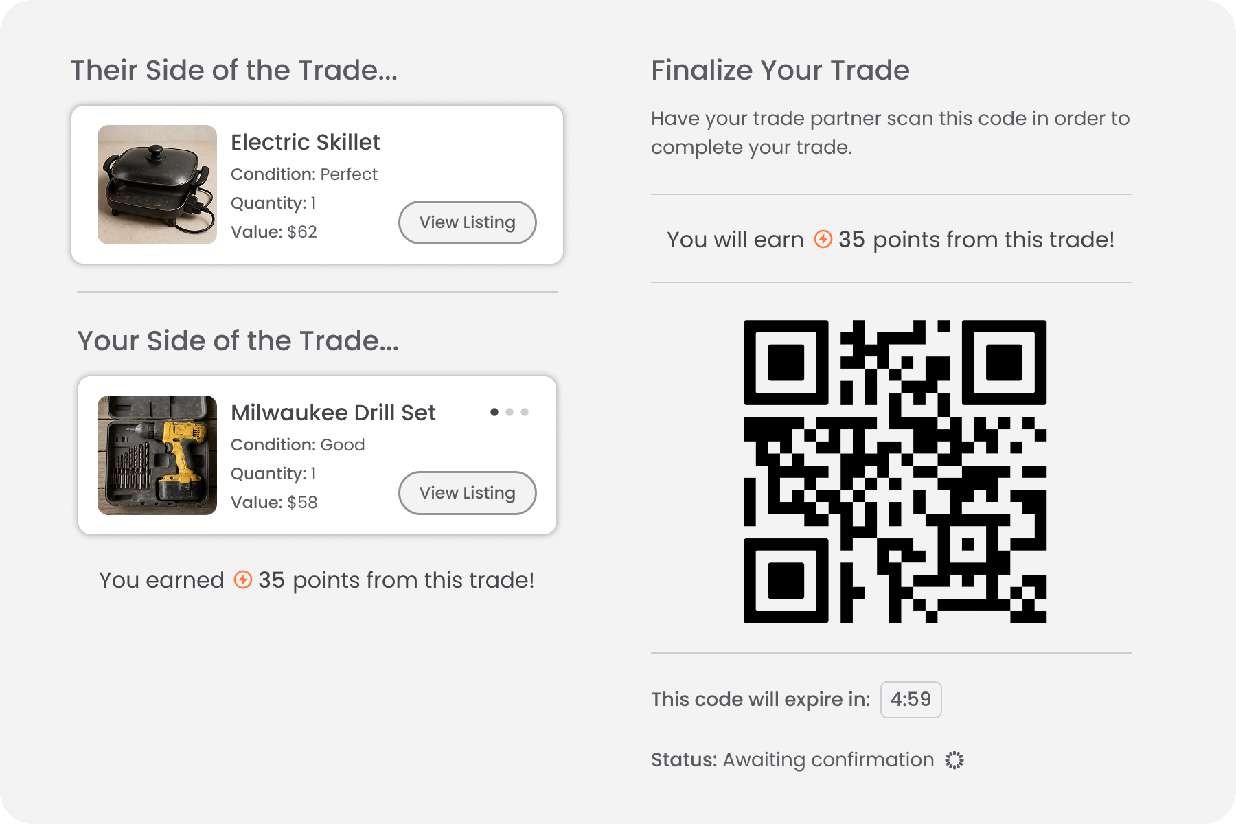 Most marketplaces focus on buying and selling, leaving trading fragmented across informal communities and social platforms. Without structured systems for negotiation and verification, users face uncertainty when attempting to exchange items directly.
